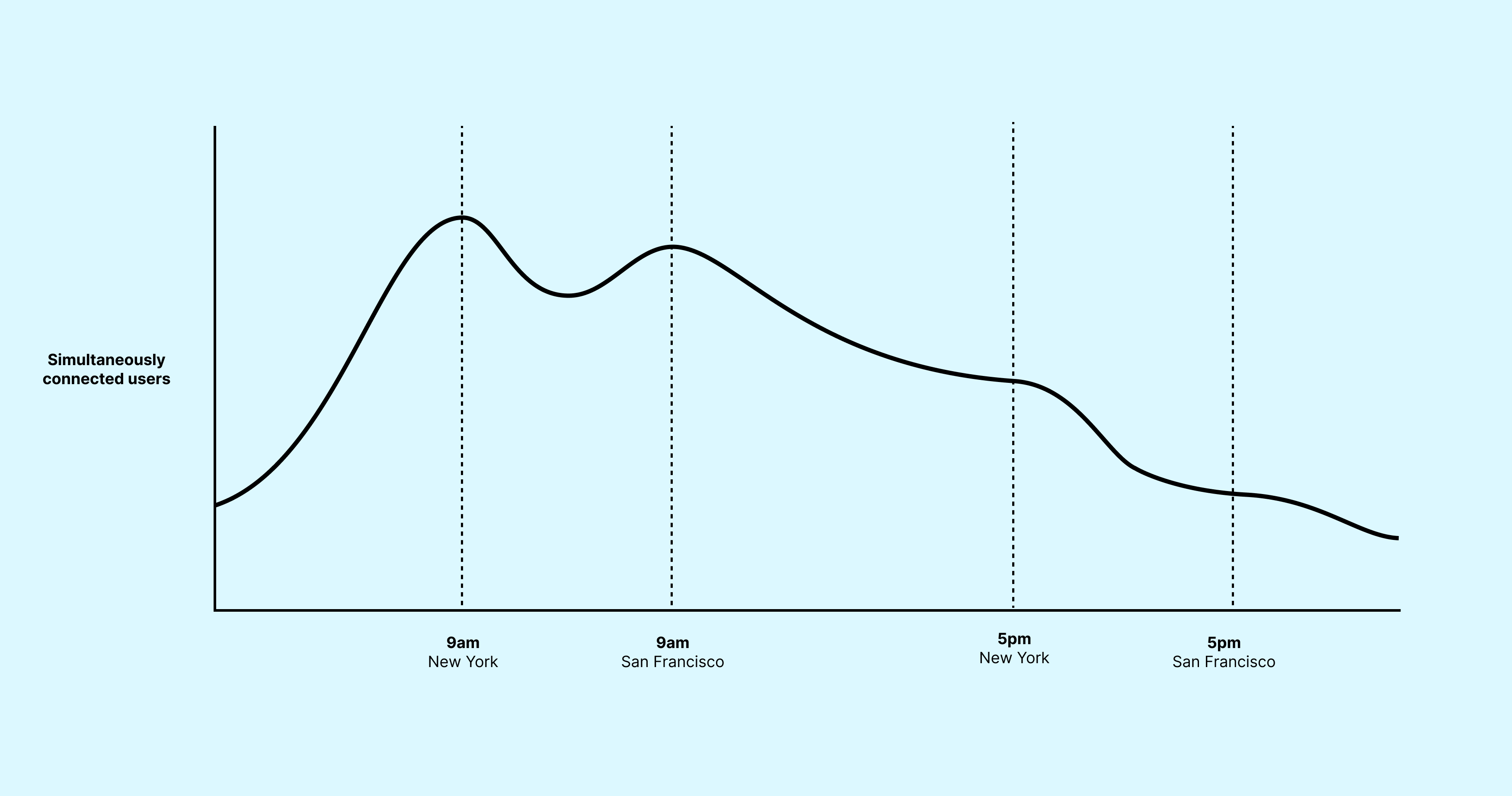 Serguei was right — things would continue to get worse, perhaps taking the entire service down, if we didn’t take immediate action. Millions of people were using the product at this point, with many of them connecting every weekday around 9am eastern time or 9am pacific time. At these times of day, our servers were near their peak capacity. This was usually fine. However, when these peak times coincided with anything else that added demand, everyone’s experience on Slack would suffer.