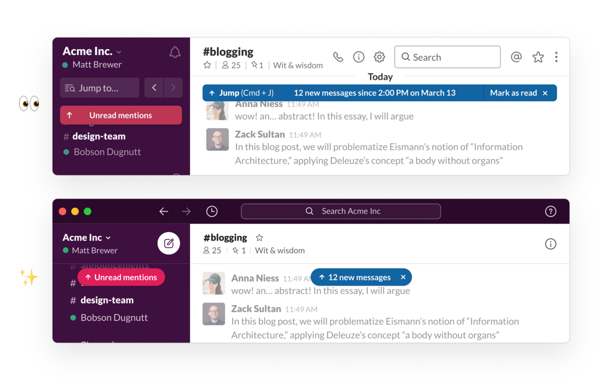 “I think it's fair to say that it was a mess, particularly for high traffic Slack workspaces, but it was a mess that users learned to navigate the way a New Yorker learns to put their blinders on to move through a city wrapped in scaffolding and has rats running all over its subway platforms.. but hey, they still think it’s the greatest city on earth!”