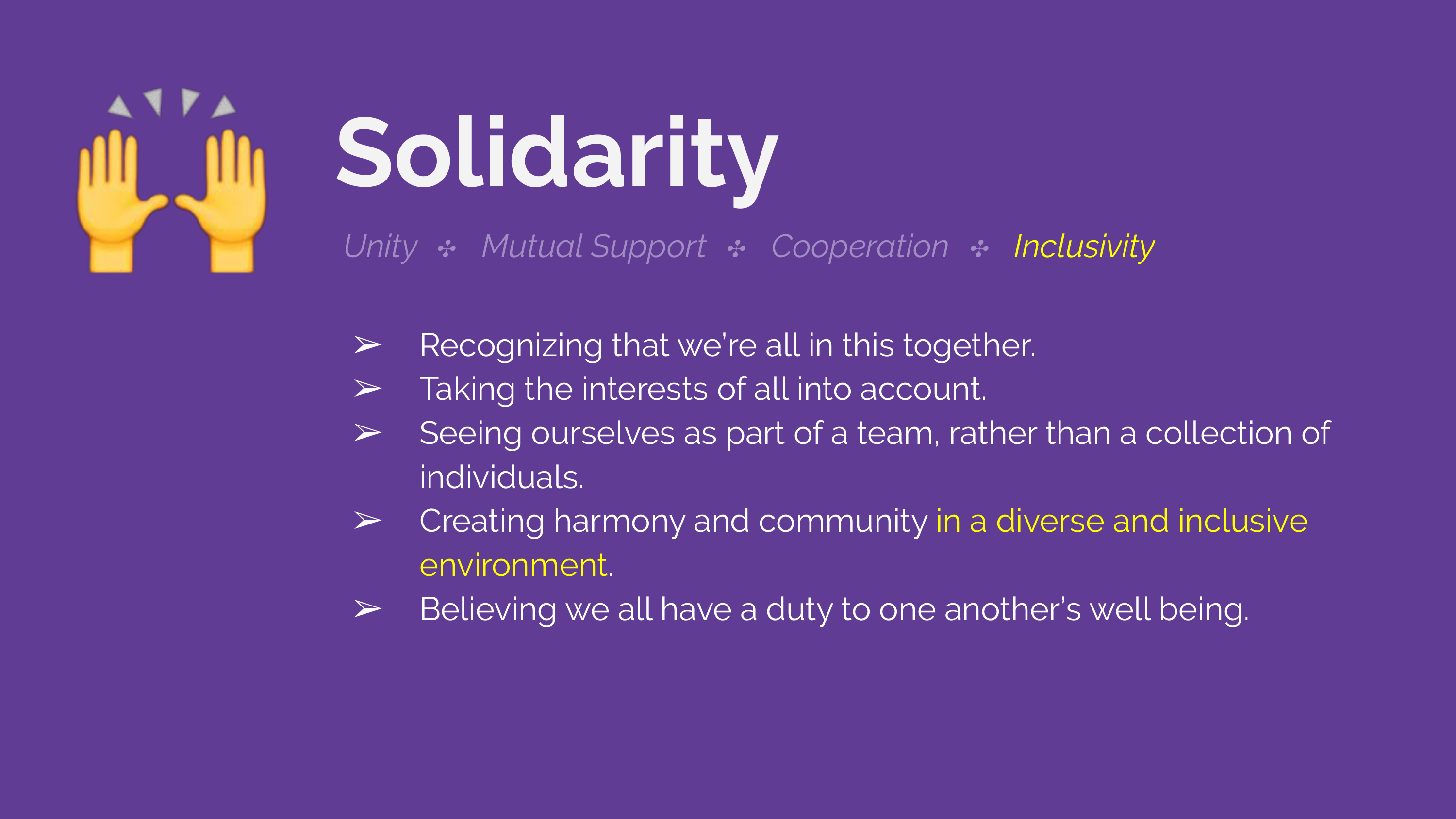 Unity · Mutual Support · Cooperation · Inclusivity