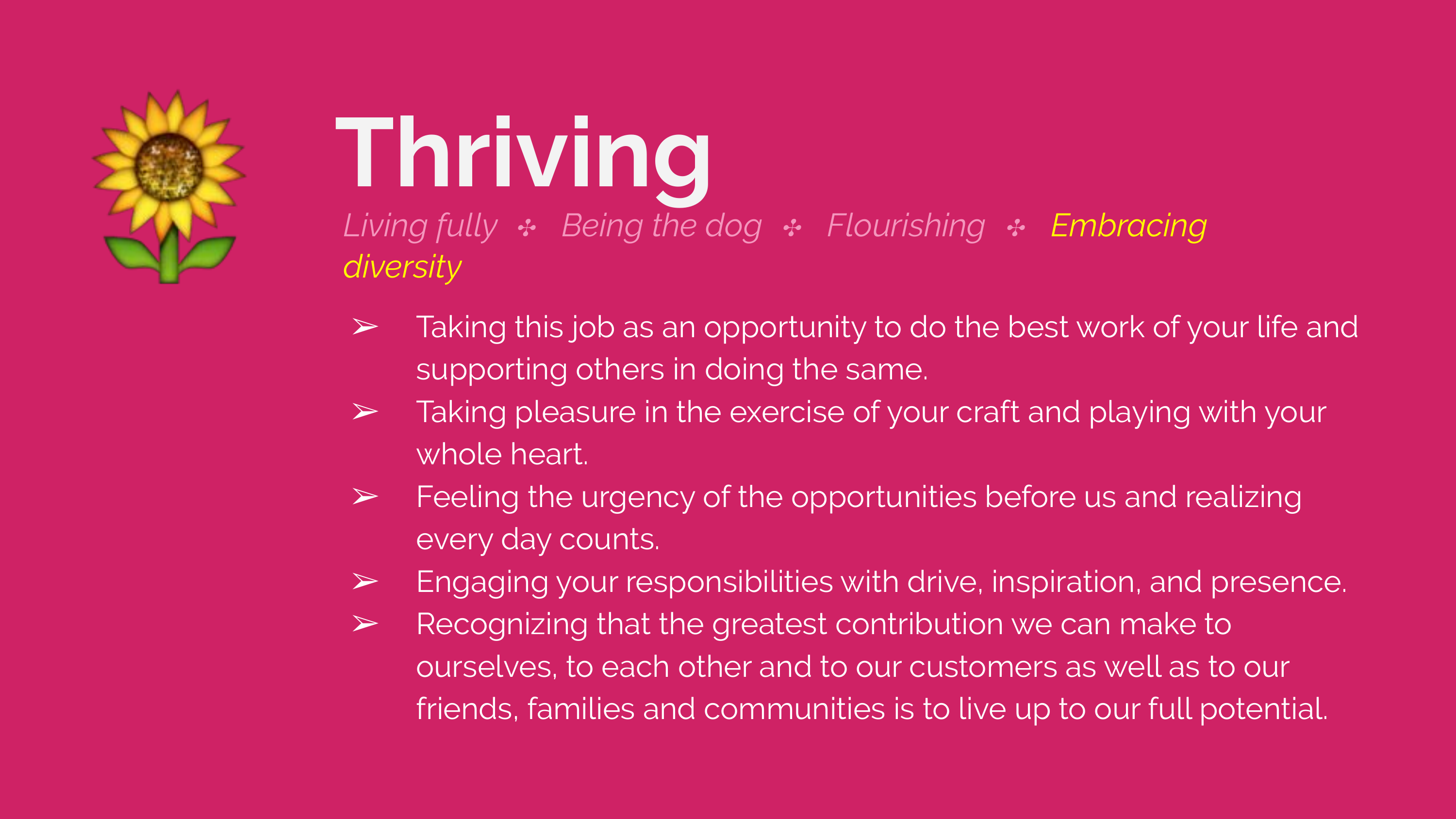 Living fully · Being the dog · Flourishing · Embracing diversity