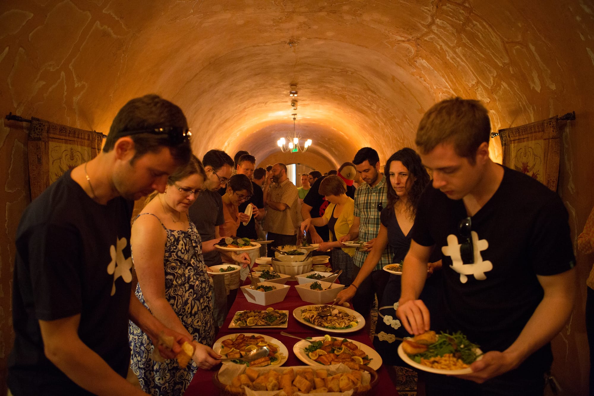 We had our first offsite at a winery in Sonoma. About 30 of us got together to figure out what came next. Many of the new staff were old friends and colleagues recruited by the founders and other early employees, hand-picked as the kind of good, smart people the company needed. For those who had worked together before it was a sort of reunion. This also helped smooth the initial growing pains of expanding the team, as we were able to rely on the trust and familiarity built up from previous jobs. Many of us met for the first time in person as we were usually distributed across timezones, countries and cities. We drank wine and hung out by the pool and played Ticket to Ride. The Slack socks we had made arrived in time for the occasion.